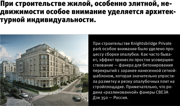При строительстве жилой, особенно элитной, недвижимости особое внимание уделяется архитектурной индивидуальности. Так, в новом жилом комплексе Knightsbridge застройщик постарался воплотить атмосферу старого Лондона с его замысловатыми архитектурными формами. Несмотря на сложность фасадов и планировок, сроки сдачи подобных объектов весьма сжаты, и график заставляет строителей искать новые решения для сокращения каждого из этапов монолитных работ.